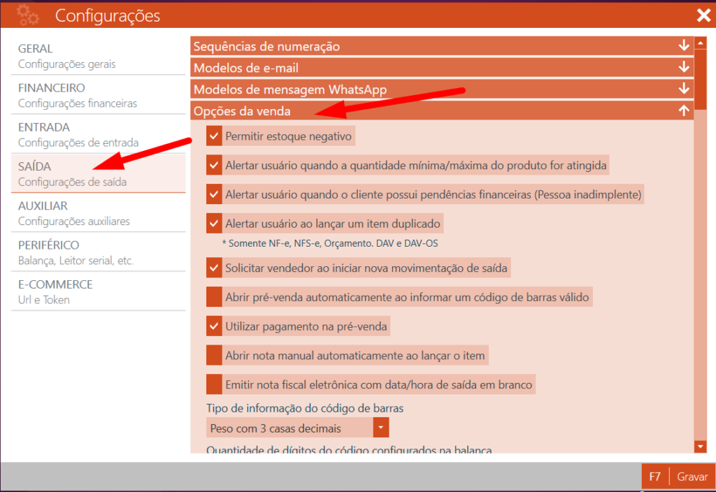 2. Digite a mensagem no documento desejado e cliquei em GRAVAR. A mensagem so vai ser destacada nas proximas emissões
