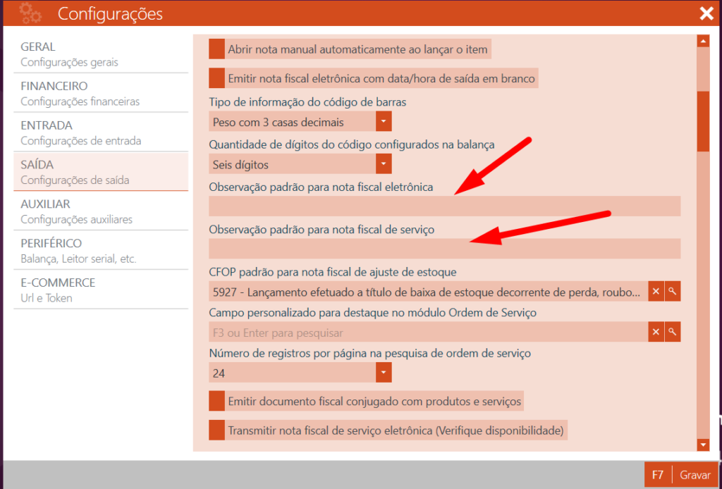 3. Para mensagens em Nota Fiscal Eletrônica e Nota Fiscal de Serviço, siga o passo abaixo.