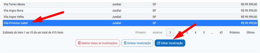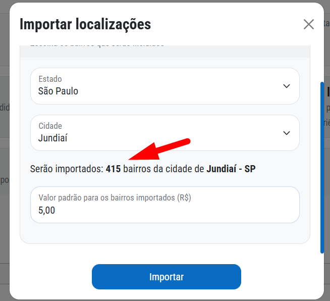 Na pesquisa da cidade, veja que o sistema encontrou a quantidade de bairros.