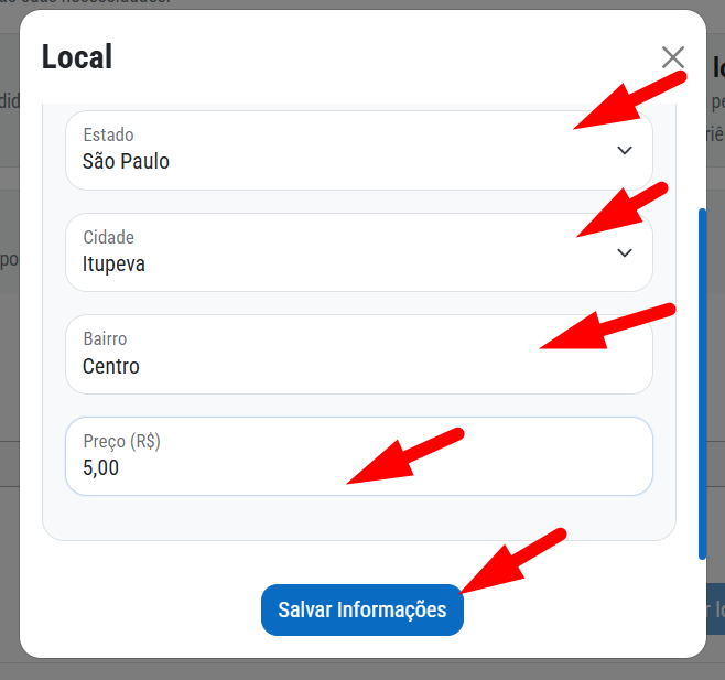 Pesquise o estado, cidade e digite o bairro e valor