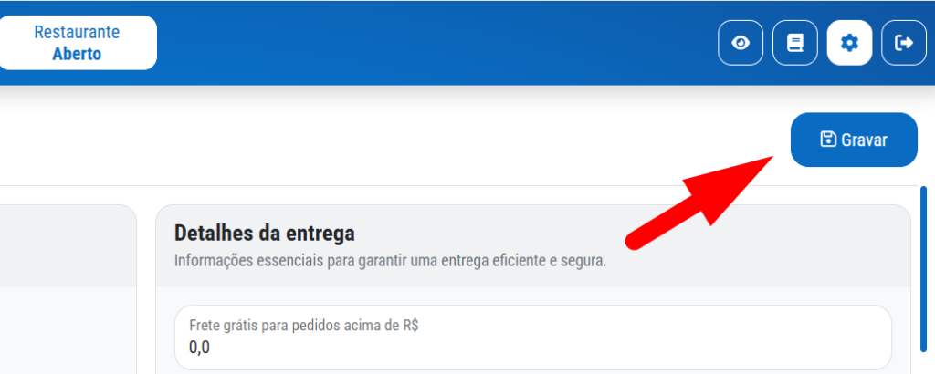 Apos fazer os cadastro clique em gravar no canto superior