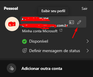 1. Selecionar o seu icone no canto superior direito da interface do teams: