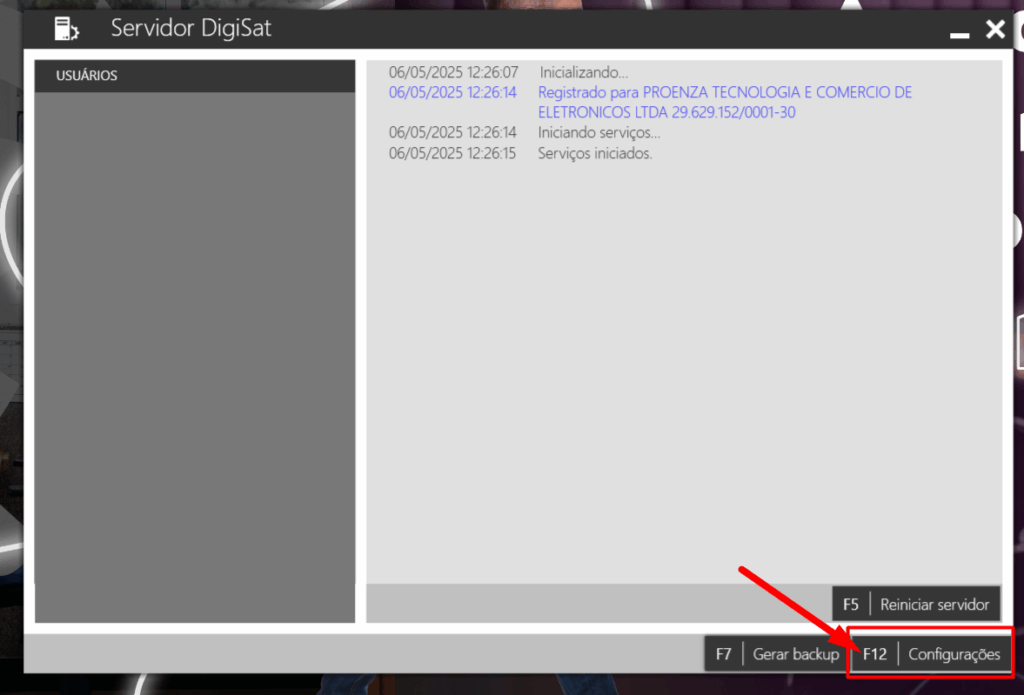 1 – Para realizar o processo de atualização de parâmetros e componentes acesse o aplicativo servidor, clique na opção de Configurações