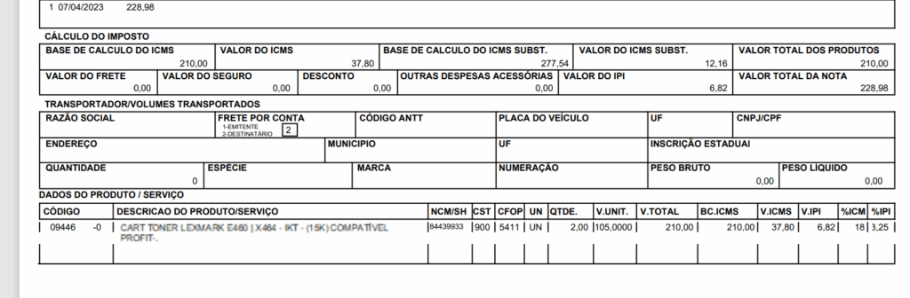 OBS: Sistema digisat ja inclui essas informações no corpo da nota.