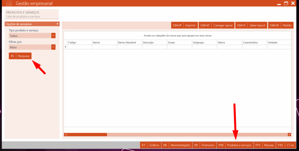 2 – clique em PRODUTOS E SERVIÇOS e depois em pesquisar