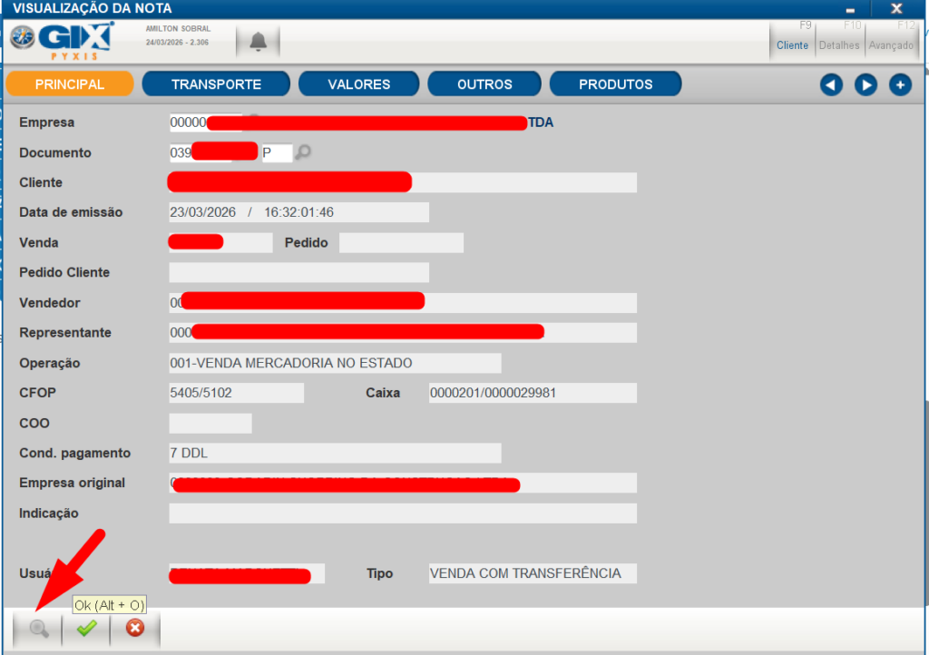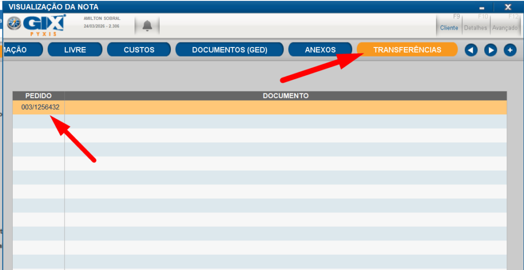 3. Na aba transferencia veja o numero da loja em PEDIDO entes do /