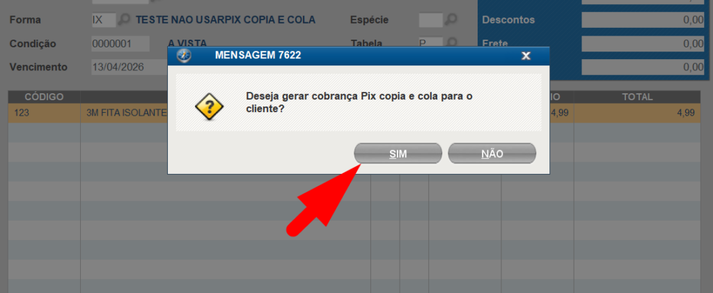 2. Clique em SIM para gerar a chave pix