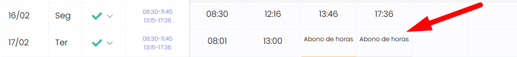 3. Na apuração de ponto, usando a justificativa criada, o nome abreviado será apresentado no relatório.