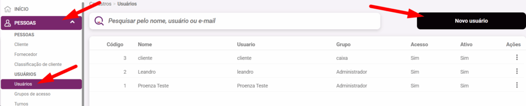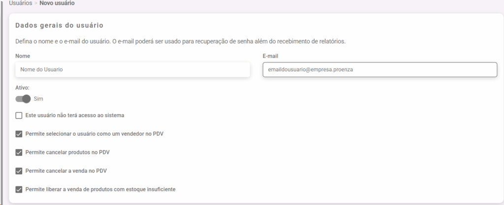 3. Digite o nome e o email do usuario, caso nao tenha email pode digitar um email quelquer, pois não é validado