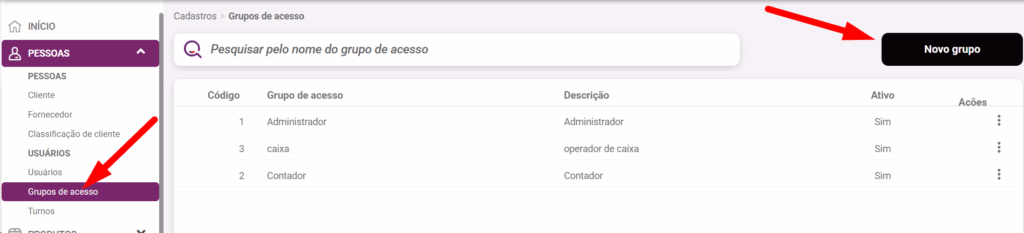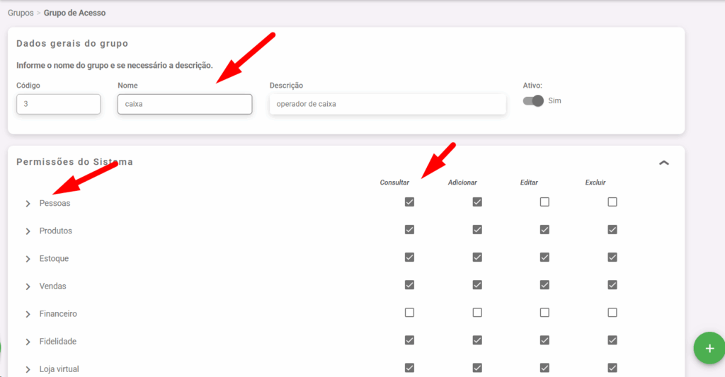 2. Marque o que esse grupo tera acesso e como vai ser o acesso