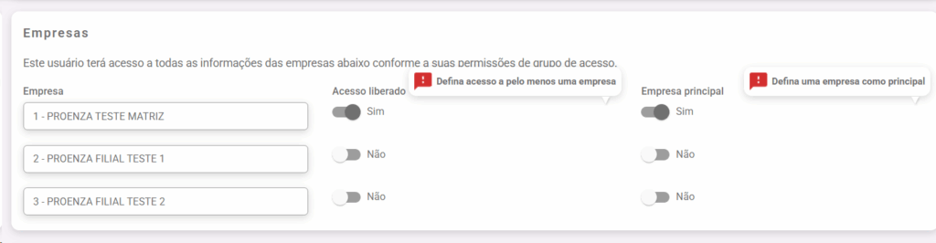 4. Se a empresa tiver matriz e filial, selecione qual empresa o usuario tera acesso