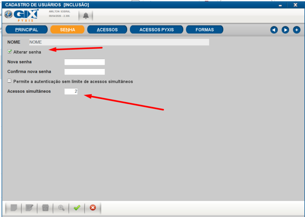 8. Usuario pacote/estoque/conferente. Digite o mesmo codigo nos 3 campos