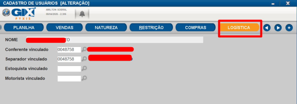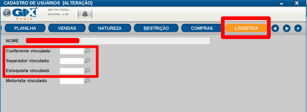Usuario da expedição/logisitca. Adicionar o codigo da natureza