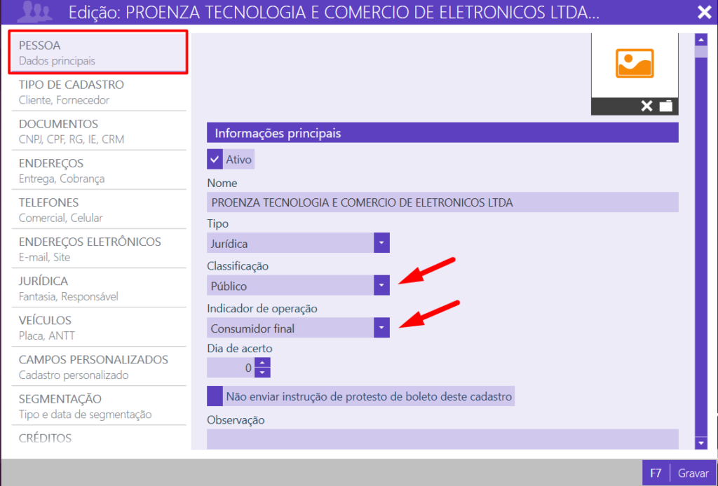 Nos caso do cliente “que sejá órgão público”. Precisa deixar os campos com as seguintes informações.