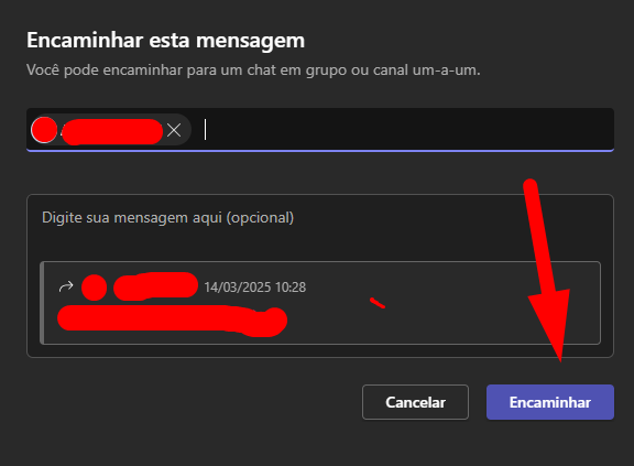 Digite o nome do contato que quer encaminhar a mensagem e clique em Encaminhar