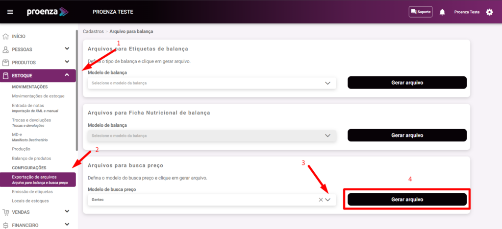 Esse método também serve para gerar “Arquivos para Etiquetas de Balança” e “Arquivos para Ficha Nutricional de Balança”.