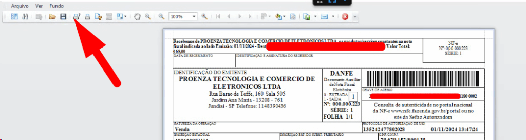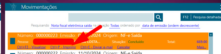 9. Para realizar a impressão da nota, cliquei em Ctrl + P ou em imprimir