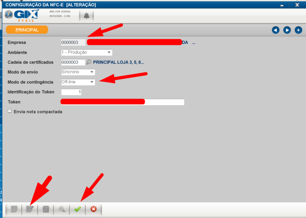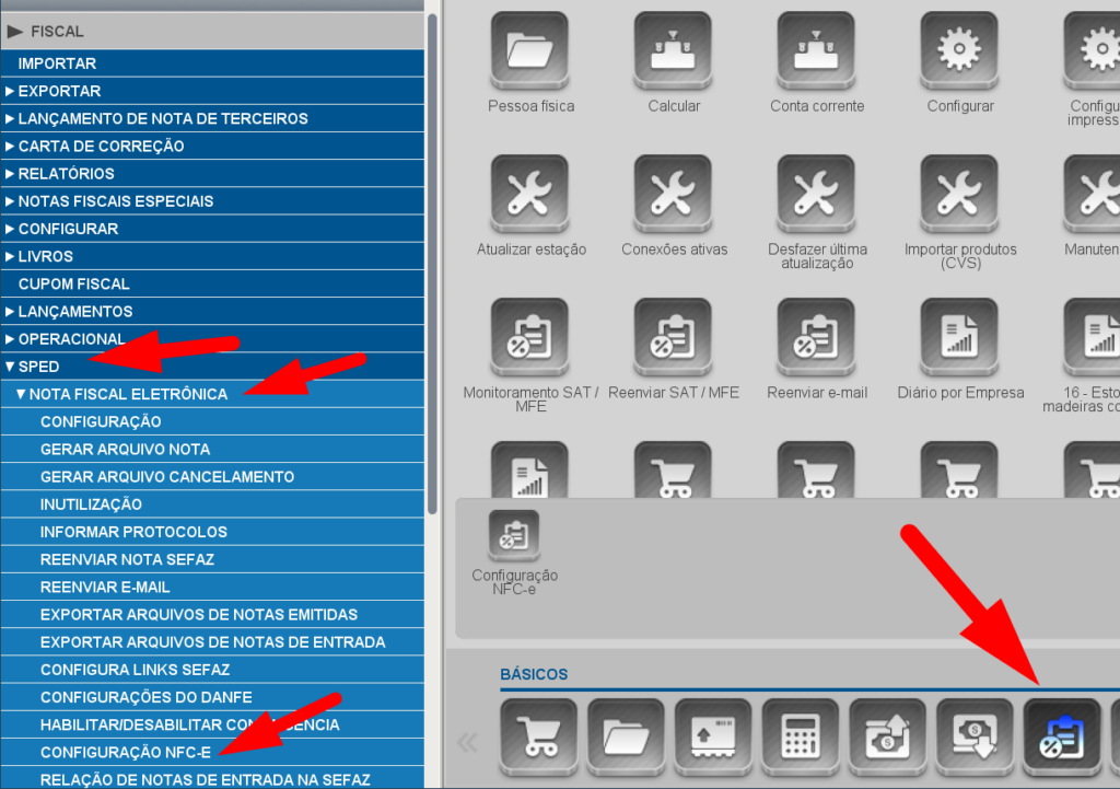 - Fiscal / SPED / Nota fiscal eletrônica / Configuração NFC-e