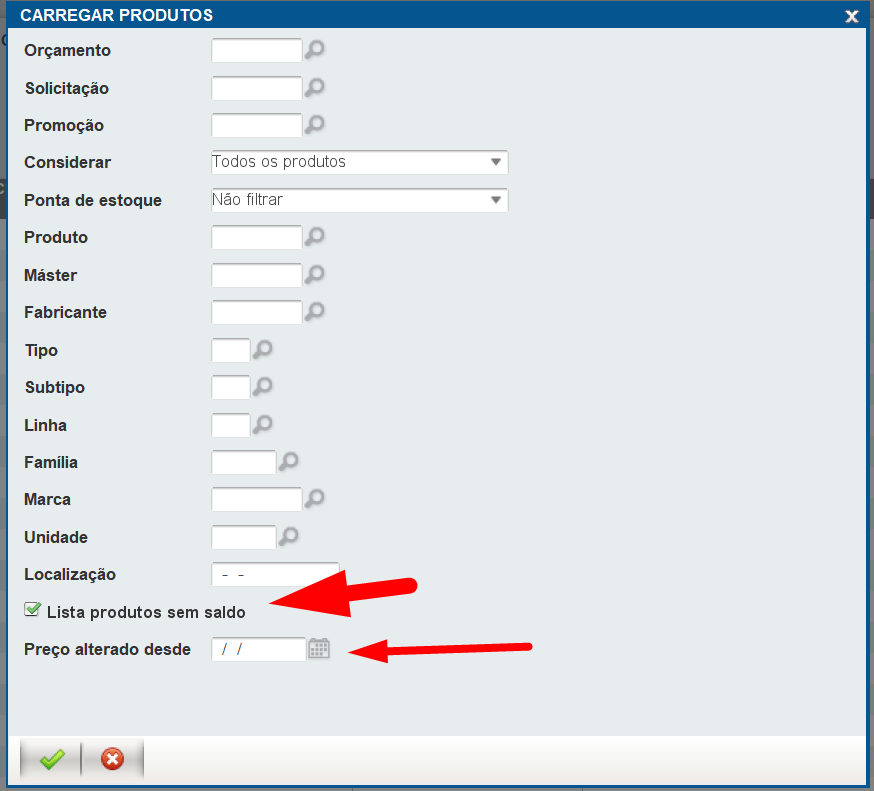 4. Marque a opção listar produtos sem estoque, assim vai aparecer os produtos de mostruario que esta disponivel para venda.