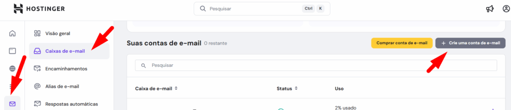 - Acesse o portal da hostinger e crie a conta de email.