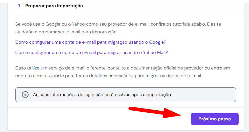 4. Cliquei em proximo passo. Veja que tem outras opções de email google e yahoo