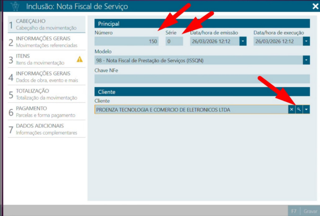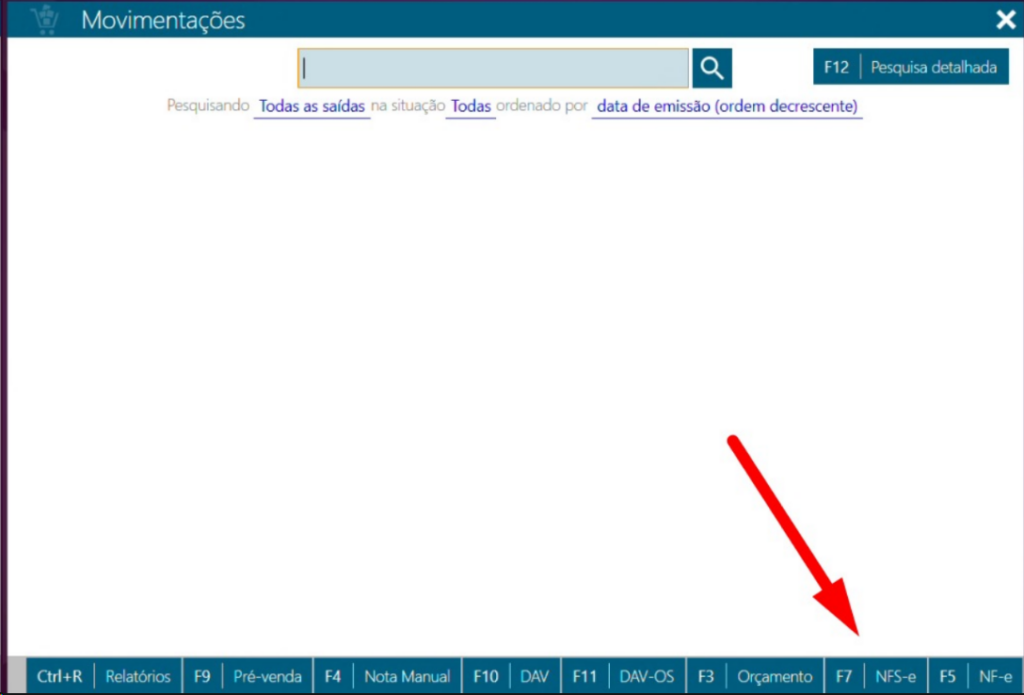 2. Passo: Agora clique em NFS-e ou “F7”.