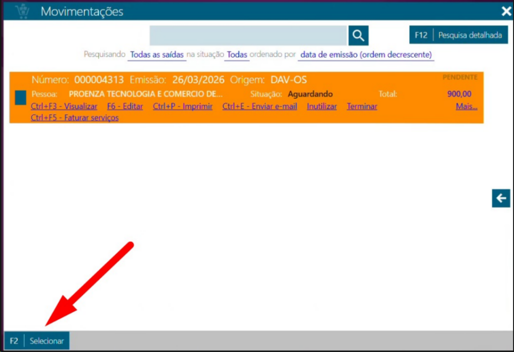5. Passo: Pesquise e selecione a DAV-OS que deseja.