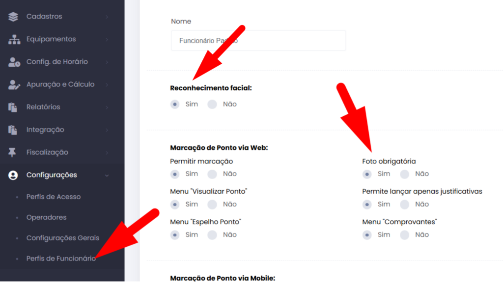 2. No mobile o reconhecimento funciona como um comparativo entre a foto da marcação e a foto do cadastro!