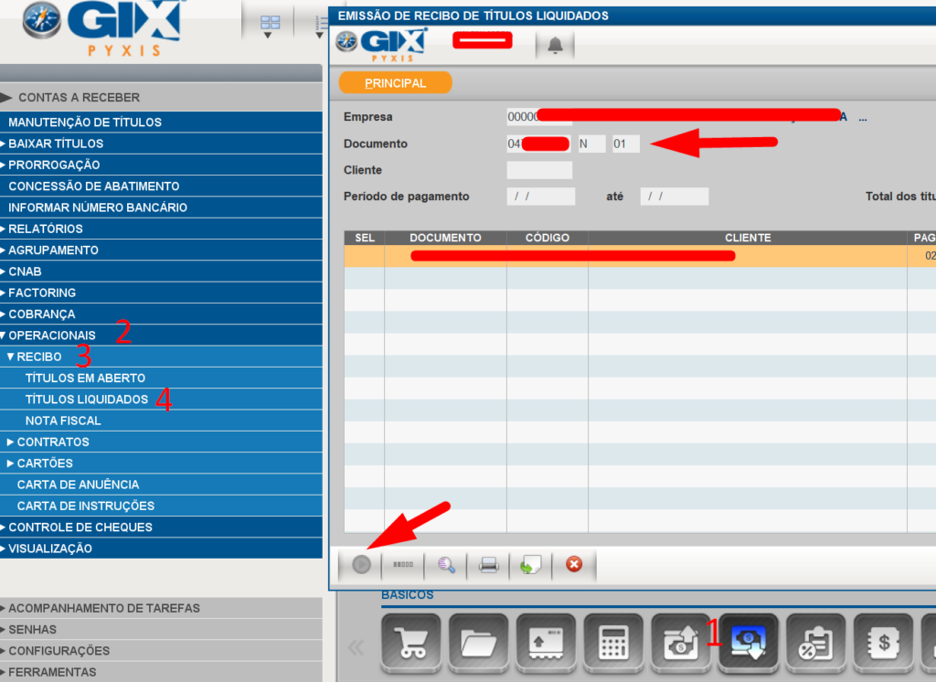 Contas a receber / Operacionais / Recibo / Títulos liquidados
