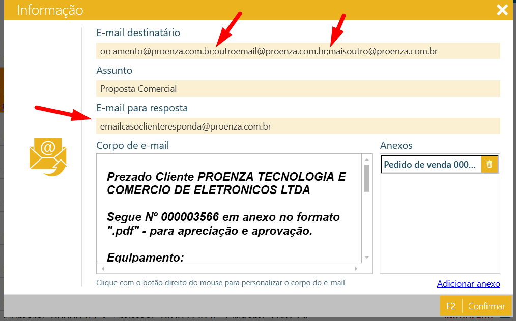 3. No envio de email, é possivel adicionar mais emails usando o ponto e virgula ( ; )