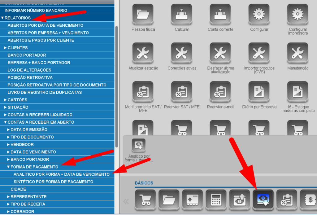 Contas a receber / Relatórios / Contas a receber em aberto / Forma de pagamento / Analítico por forma + data de vencimento