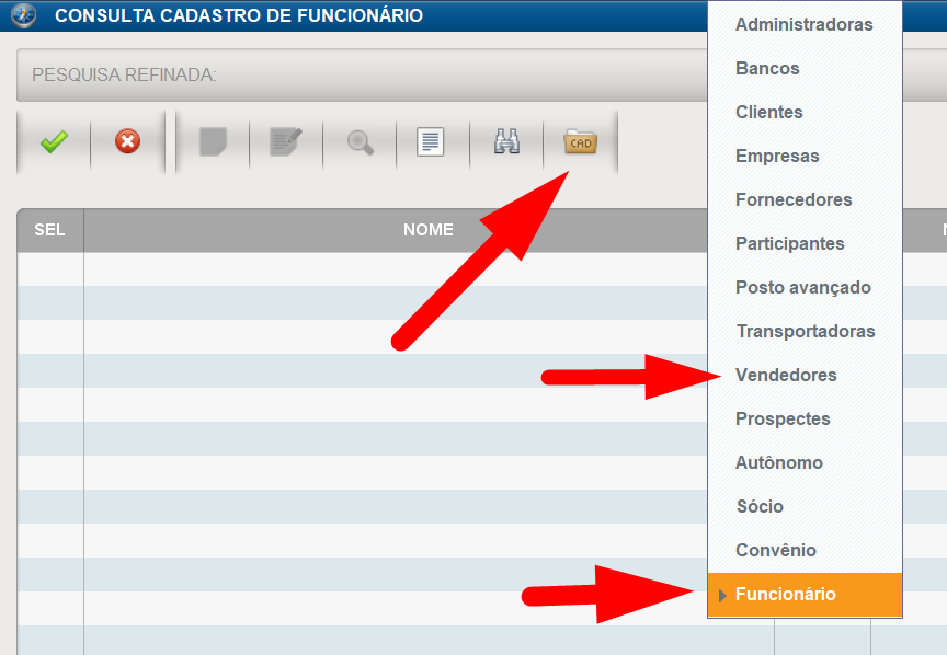 3. Alterar o tipo de cadastro para funcionario ou vendedor